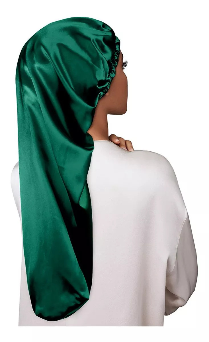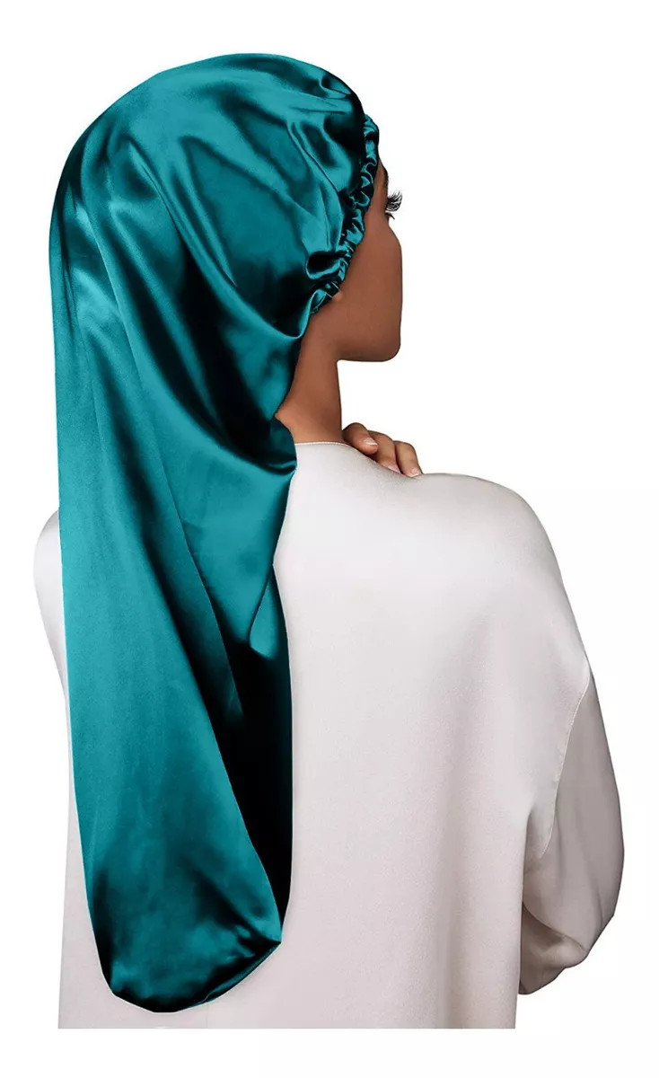 Este gorro está diseñado específicamente para cabellos largos, confeccionado con satén, un material suave y sedoso que reduce la fricción y el daño al cabello durante el sueño. Su diseño cómodo y adaptable asegura una protección efectiva durante la noche.
